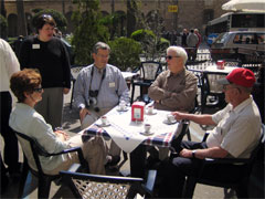 Less than 24 hours in Italy and we're already enjoying espresso at a café. Having deep intellectual conversations like, "Boy, we have the best name tags. Plastic, engraved, with color. None of those laser printed stickers or cheap crumpled office paper like the other tour groups here. I bet we make the other groups jealous with our great name tags. Woo Hoo! Go Team Go!" |